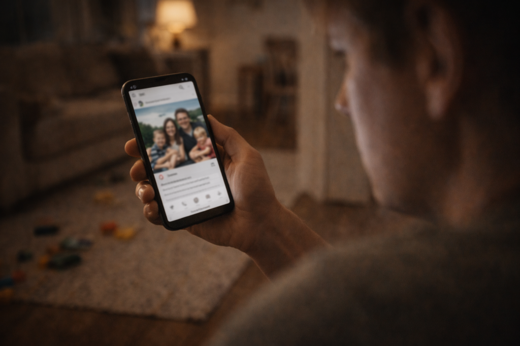 Amplificato dai social media: Instagram/Facebook mostrano highlights selezionati (pazienza infinita, attività creative, sorrisi), non la realtà completa. Il confronto sociale è sempre esistito, ma i social lo hanno reso onnipresente e sistematico.